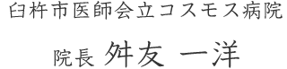コスモス病院の理念は前任の下田勝広先生が作られた『医療を通じて地域から信頼と笑顔を!』、そして職員の行動指針は『笑顔で協働』です。私はこの理念を引き継ぎ、職員が働きやすく働き甲斐のある病院づくりを行っていきます。そのために、職員一人一人が地域における組織の在り方を我がこととして考え、安心して意見を言える組織を目指します。また、職員が元気に働き続けるために職員の健康づくりを推進したいと思います。